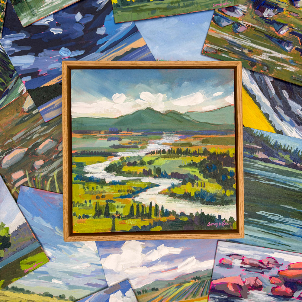These are all the pieces I have currently available from my most recent collections. Feel free to ask me any questions and, if you're local, arrange a time to view the painting in person. All original paintings ship free and most offer framing options.