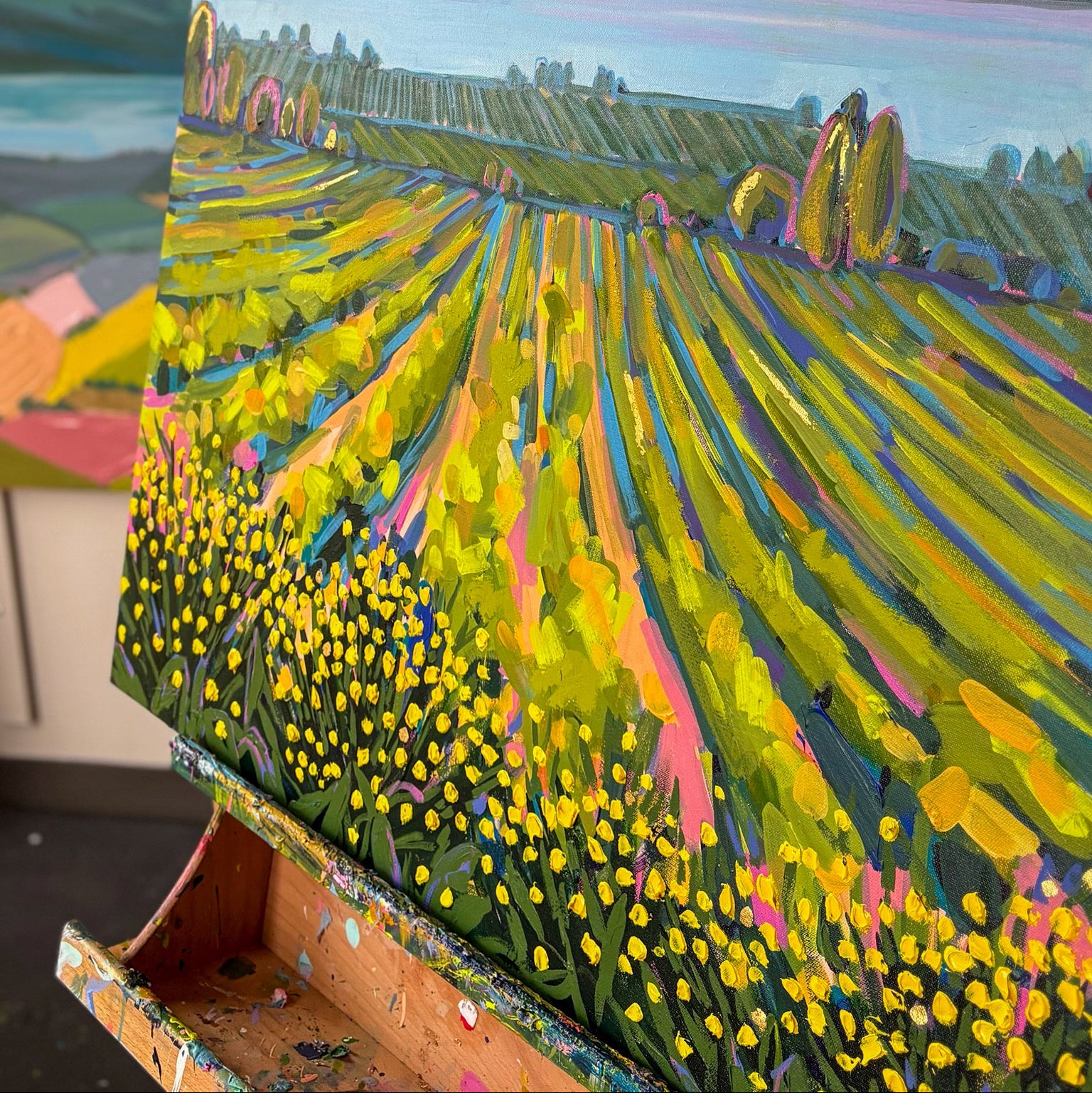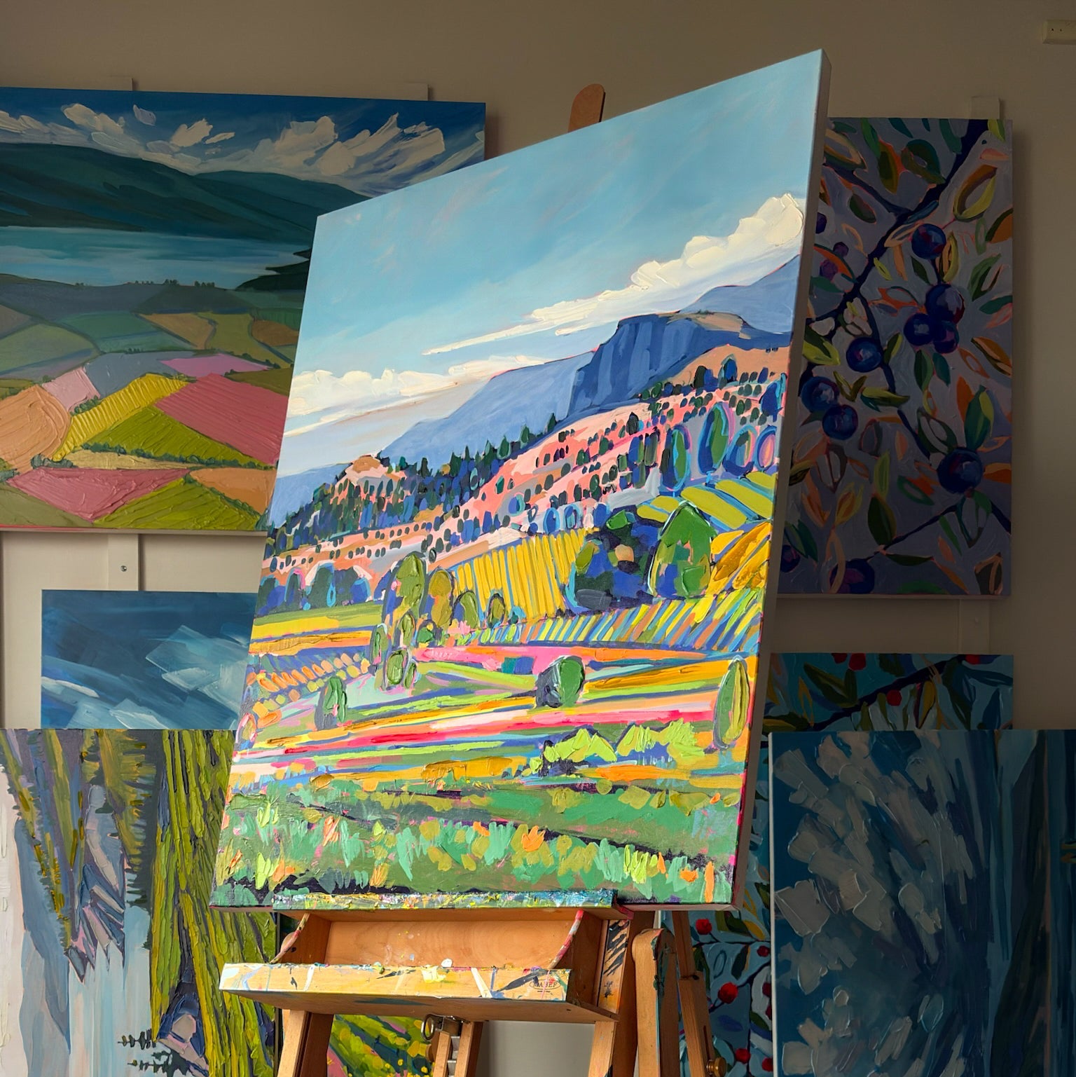 We drove countless routes, each one a winding bounty of sun-drenched vineyards and dusty roadside stops. Fields of grapes, peaches, and cherries blurred into a smear of colour through the car window as they passed. I was searching for the perfect vantage, the view that would reveal this collection to me.