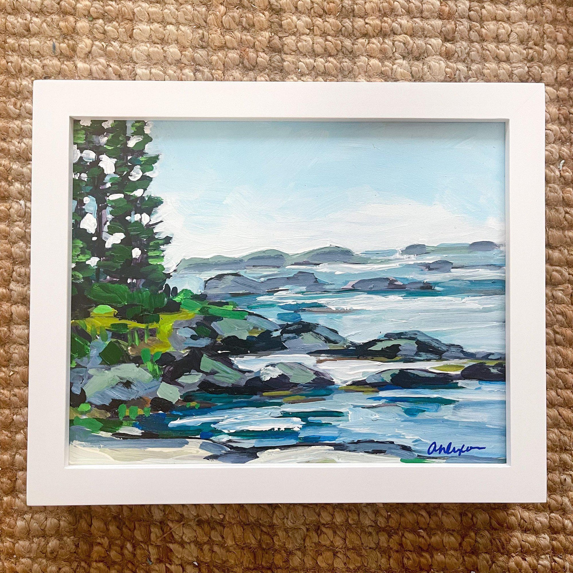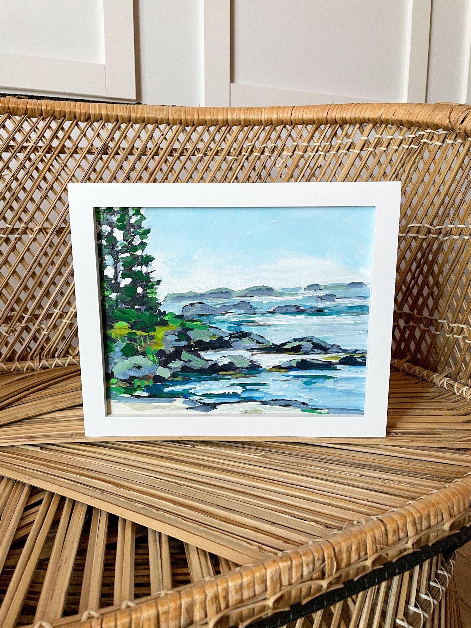Each of these pieces were painted on location or, en plein air, on the coastlines and beaches of Vancouver Island, the parks and backroads of rural Alberta, and the shores of Cape Breton. Pieces in this collection come with a white frame, ready to to displayed on your wall, book case or gifted to a loved one.