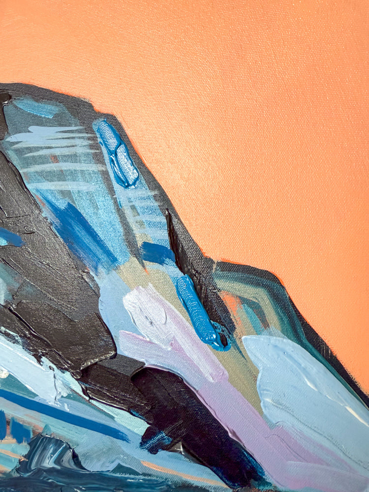 This painting is inspired by Mount Assiniboine, which cradles the border of Alberta and British Columbia,